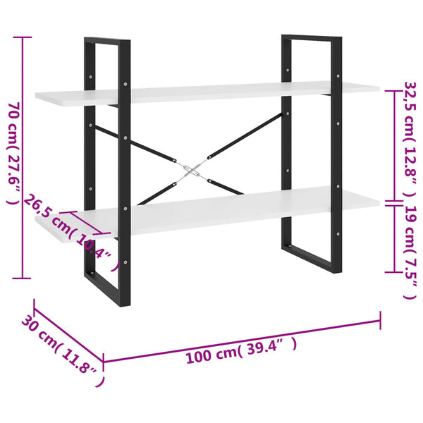 Valkoinen kirjahylly 100x30x70cm 2-tasoinen, puinen