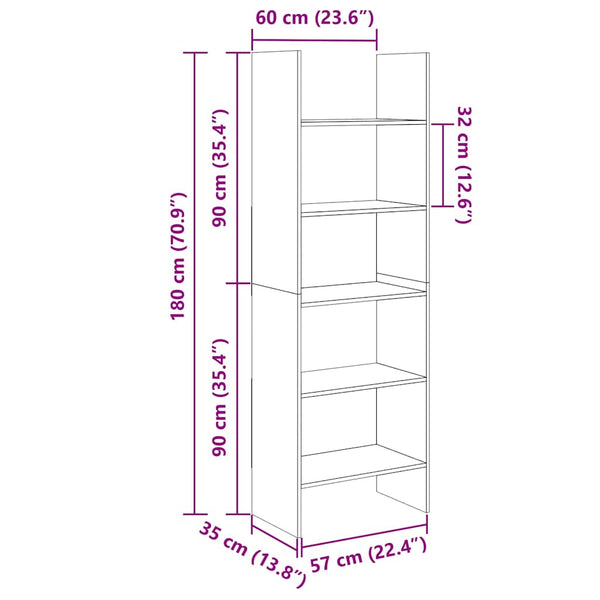 - Mitat: 60 x 35 x 180 cm (L x S x K)