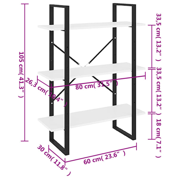 Tämä kirjahylly on valmistettu laadukkaasta teknisestä puusta ja metallirungosta, tämä takaa sen tukevuuden, kestävyyden ja pitkän käyttöiän. Siinä on kolme hyllyä, joten se tarjoaa runsaasti tilaa kirjoille, lehdille ja muille koriste-esineille. Kirjahylly on helppo puhdistaa kostealla liinalla.