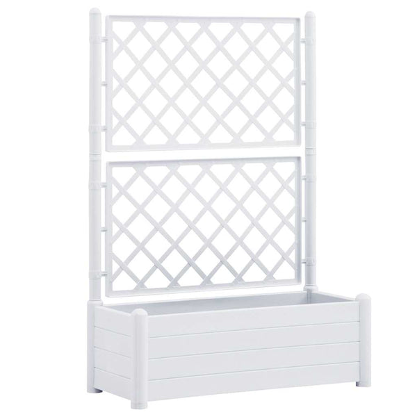 Korotettu, kevytrakenteinen kukkalaatikko on valmistettu säänkestävästä PP:stä ja se on sopiva ulkokäyttöön. Siinä on suuri, tilavuudeltaan 90 l kukkalaatikko, johon mahtuu huomattava määrä viherkasveja ja kukkia. Integroitu ristikko tarjoaa hyvän tuen köynnöskasveille ja luo samalla vaikuttavan ja koristeellisen vaikutelman ristikkoa pitkin kiipeävien kasvien ja kukkien ansiosta.