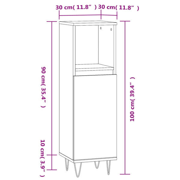 Valkoinen kylpyhuoneen kaappi 30x30x100cm puinen