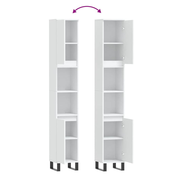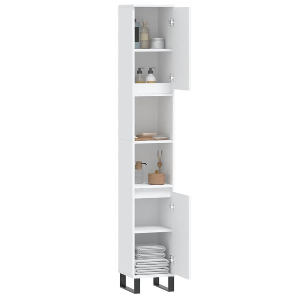 Valkoinen kylpyhuoneen kaappi 30x30x190cm puinen