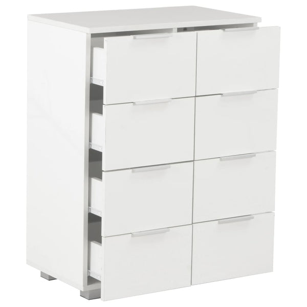 Lastulevystä valmistettu kaappi korkeakiiltoisella viimeistelyllä on hienostuneen näköinen ja erittäin vakaa sekä kestävä. Lisäksi kahdeksalla vetolaatikolla varustettu sivupöytä tarjoaa runsaasti säilytystilaa esineillesi, mikä auttaa pitämään huoneesi siistinä ja puhtaana. Tämä korkeakiiltoinen säilytyskaappi on helppo puhdistaa.