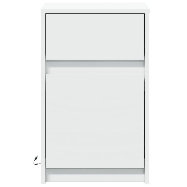 Valkoinen yöpöytä led-valoilla puinen