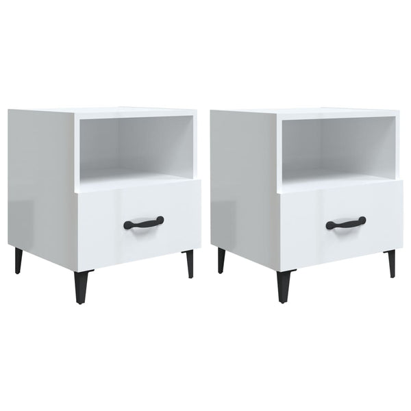 Valkoinen yöpöydät 2 kpl korkeakiilto puinen