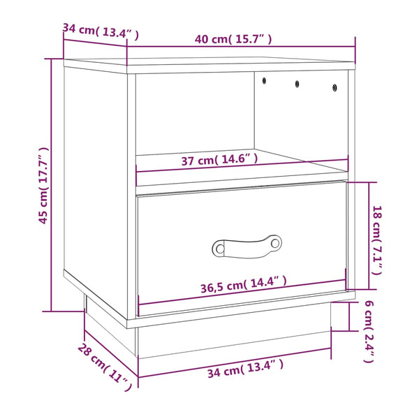 Valkoinen yöpöydät 40x34x45cm 2 kpl mänty