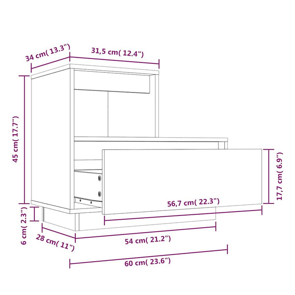 Valkoinen yöpöydät 60x34x51cm 2 kpl mänty