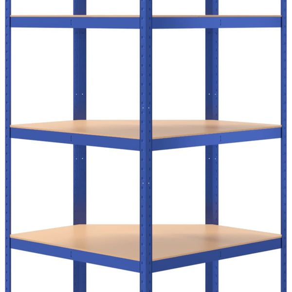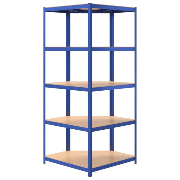 Sininen varastokulmahylly 5-tasoinen teräs ja puu