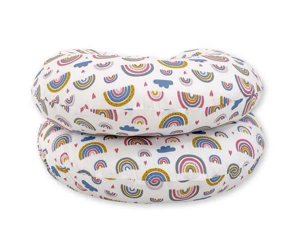 Imetysaikana Maternity Support Pillow C - sateenkaari on korvaamaton apu. Se tukee äidin käsivarsia ja selkää imetyksen aikana. Erityinen täyte auttaa vakauttamaan äidin ja vauvan asennon istuma- tai makuuasennossa. Tukityynyä voidaan asettaa selän alle ja käsien alle, jolloin se tukee selkää, helpottaa käsien kuormitusta ja mahdollistaa mukavan asennon äidille ja vauvalle pulloa ruokittaessa.