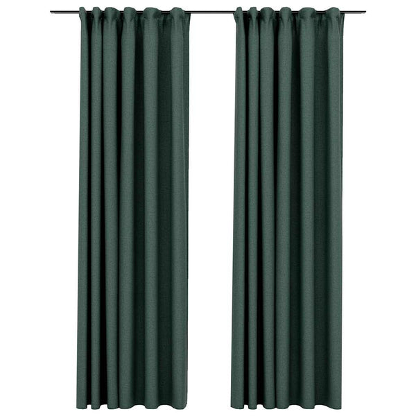 Vihreä pellavamaiset pimennysverhot koukuilla 140x245cm 2 kpl