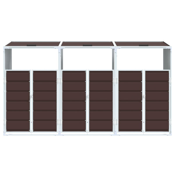 Ruskea wheelie bin säilytys triple bins 216x81x115cm teräs