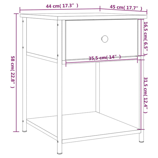 Ruskea tammi yöpöydät 44x45x58cm 2 kpl puinen