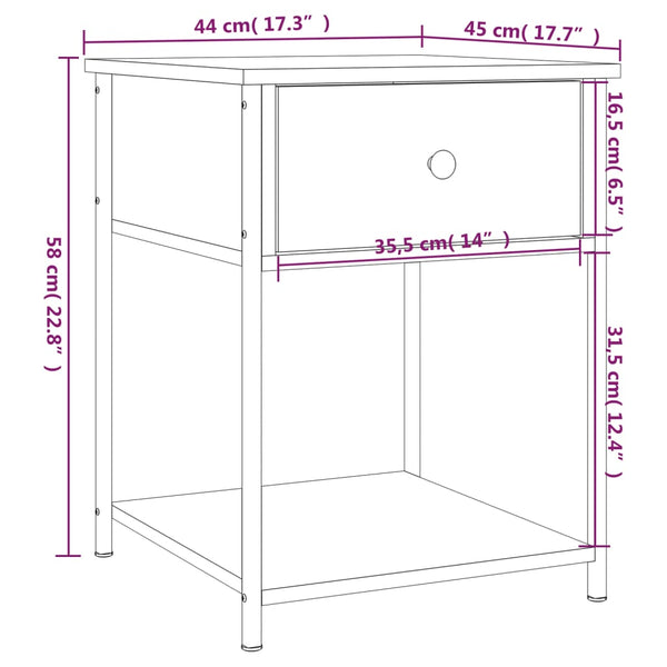 Sonoma-tammi yöpöydät 44x45x58cm 2 kpl, puinen