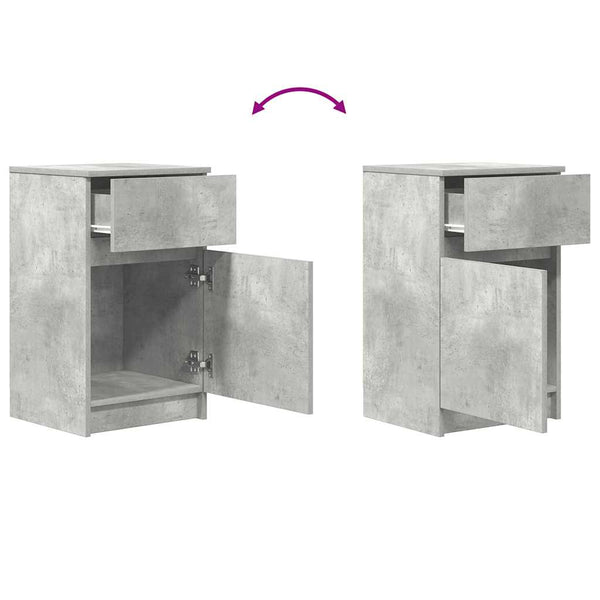 Betoninharmaa yöpöytä 39x35x65cm puinen