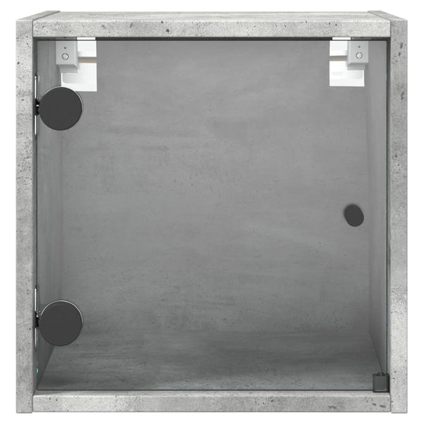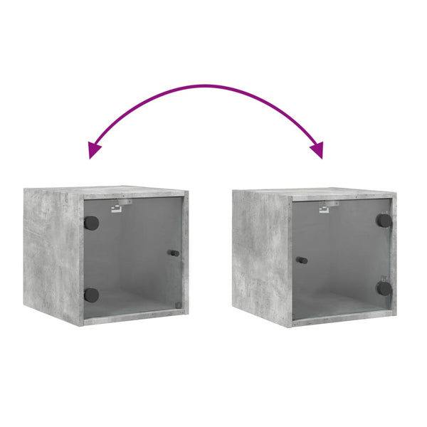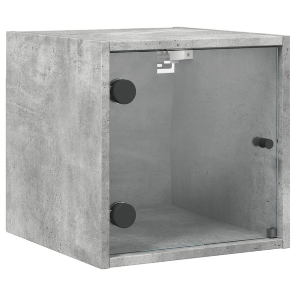 Betoninharmaa yöpöytä lasiovella 35x37x35cm