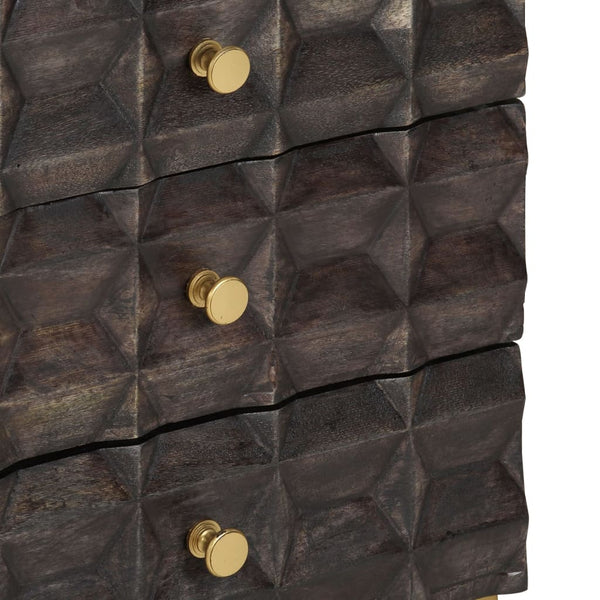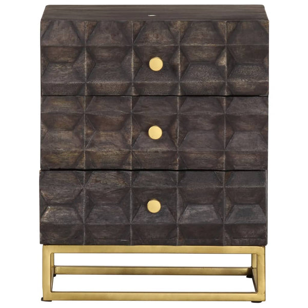 Vuoteen vieruskaappi on valmistettu täydestä mangopuusta, trooppisesta lehtipuusta, jolla on voimaa kantaa painoa. Se kestää myös ajan patinaa, tehden siitä vakaan ja kestävän. Säilytyskaapissa on kolme vetolaatikkoa, tarjoten runsaasti säilytystilaa henkilökohtaisten esineiden järjestyksessä pitämiseen. Vankka pöytälevy on ihanteellinen paikka laittaa esille koriste-esineitä, kuten valokuvakehyksiä, ruukkukasveja, kukkamaljakoita, ja muita. Lisäksi se on helppo puhdistaa kostealla liinalla.