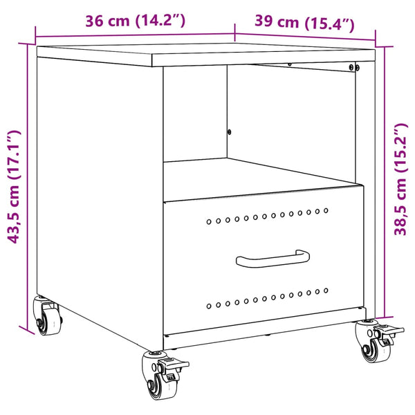 Oliivinvihreä yöpöytä 36x39x43,5cm teräs