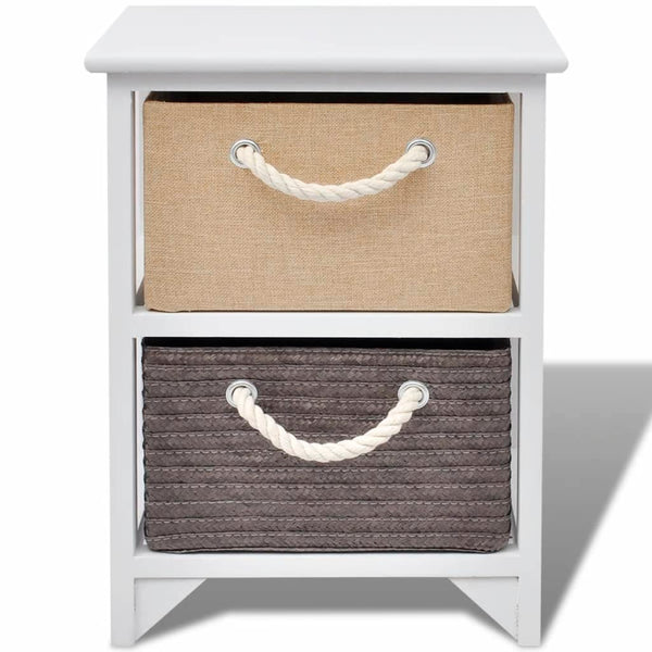Tässä yöpöydässä on 2 vetolaatikkoa, jotka tarjoavat tilavan säilytystilan pienien tavaroiden järjestykseen ja pitämään ne käden ulottuvilla. Laatikoiden narukahvat lisäävät maalaistyyliä.