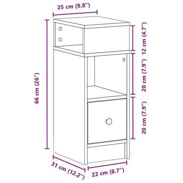 Sonoma-tammi yöpöytäkaappi laatikolla 25x31x66cm