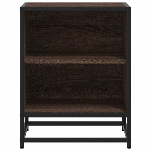 Ruskea yöpöytäkaappi tammi suunniteltu puu ja metalli