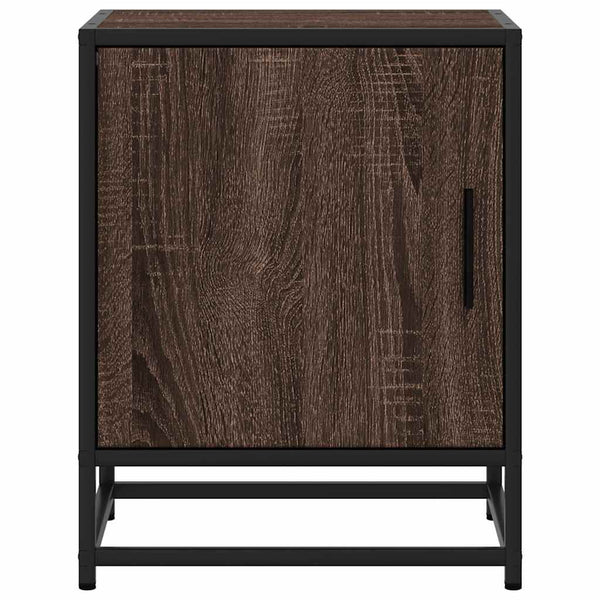 Ruskea yöpöytäkaappi tammi suunniteltu puu ja metalli