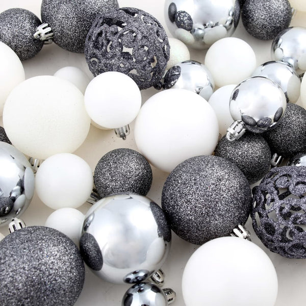 Valkoinen/harmaa joulukuusen pallosarja 3/4/6cm 100 kpl