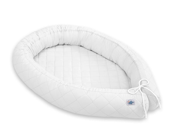 Pesän kangas on 100 % puuvillaa, joka on pehmeää, kestävää ja hellävaraista vauvan herkälle iholle. Täytteenä käytetään hengittävää ja sertifioitua ECO FILLBALL -kuitua. Nämä pehmeät, ohuita kuituja sisältävät pienet pallot luovat lisäilma-aukkoja ja takaavat hyvän ilmanvaihdon.