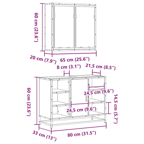 Harmaa kylpyhuoneen kalustesarja 2-osainen, sonoma puinen