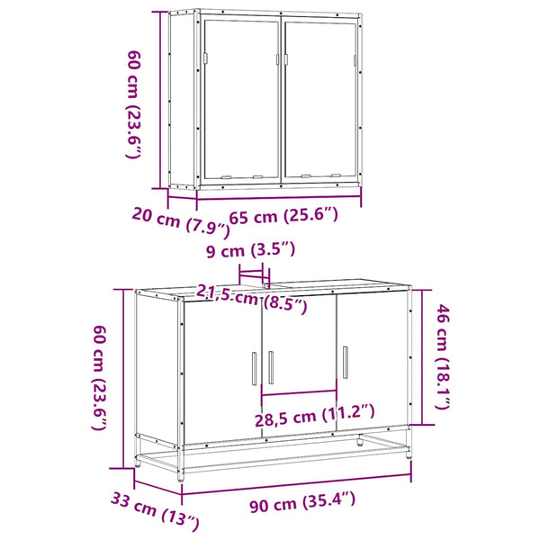 Harmaa kylpyhuoneen kalustesarja 2-osainen, sonoma puinen