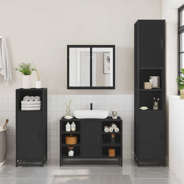 Musta kylpyhuonekalustesarja 2-osainen, puinen