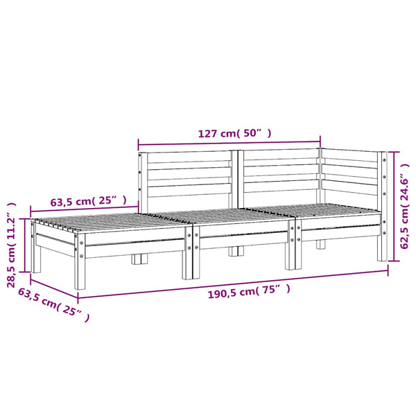 Vahanruskea puutarhasohva 3-istuttava, mänty