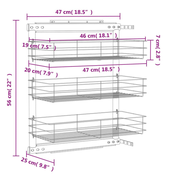 Hopea ulosvedettävä keittiöhylly 47x25x56cm 3-kerroksinen