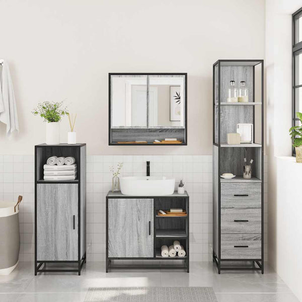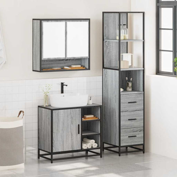 3-osainen Kylpyhuoneen kalustesarja harmaa Sonoma tekninen puu