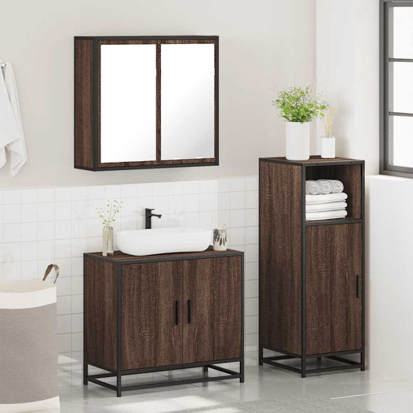 Ruskea kylpyhuoneen kalustesarja Aglaita (3-osainen, tammi puinen)