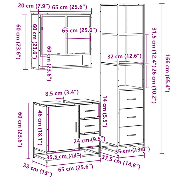 3-osainen Kylpyhuoneen kalustesarja savutammi tekninen puu