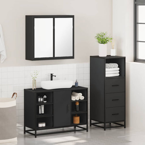 Musta kylpyhuonekalustesarja 3-osainen, puinen