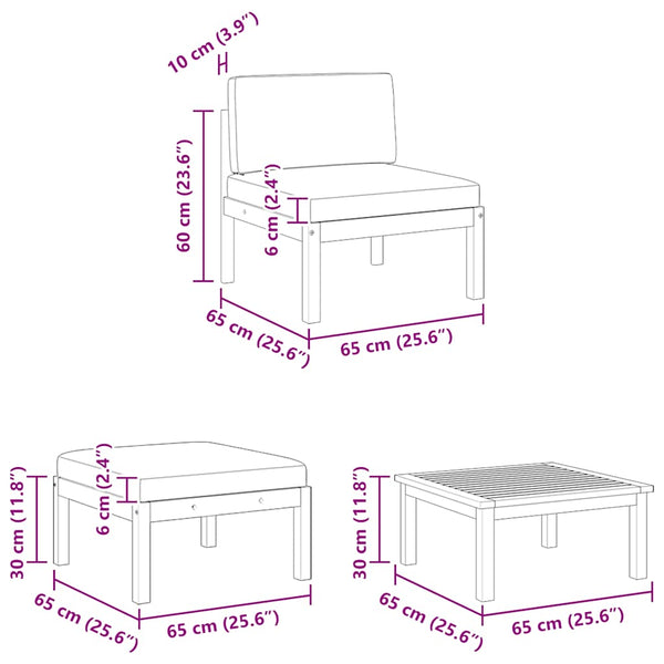 Puutarhan lepotuolisarja 3-osainen, tyynyillä, akasiapuu