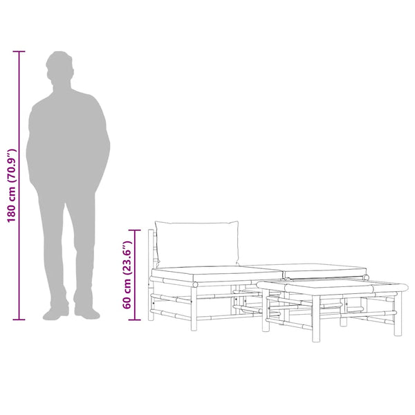 Tämä ulkosohvasarja on valmistettu bambusta, joka tekee siitä tukevan ja helpon puhdistaa. Paksusti pehmustetut istuin- ja selkätyynyt tuovat lisämukavuutta vapaa-aikaasi. Lisäksi voit lepuuttaa jalkojasi jalkarahilla. Sivupöytä on ihanteellinen paikka syötävien ja juomien lähettyvillä pitämiseen. Kevyen rakenteen ansiosta kalustesarja on helppo siirtää paikasta toiseen. Voit asettaa sarjan mihin tahansa asetelmaan mieltymystesi mukaan sen modulaarisen rakenteen ansiosta.
