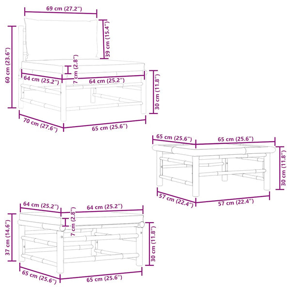 Tummanharmaat puutarhasohvasarja 3-osainen, tyynyt bambu