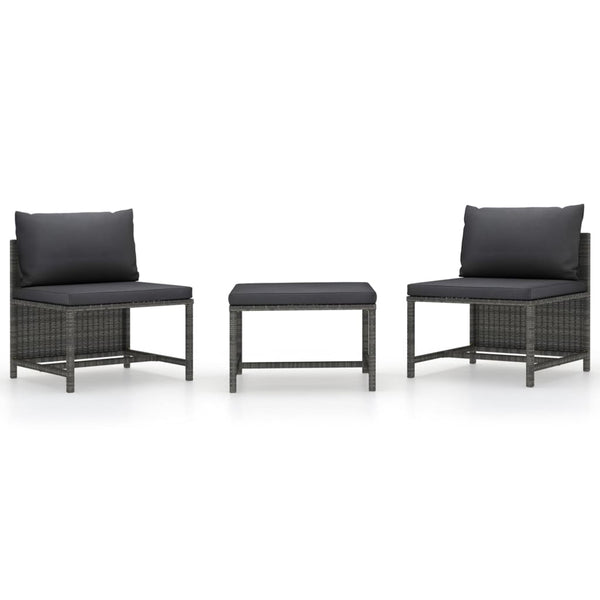 Harmaa puutarhasohvasarja 3-osainen tyynyillä polyrottinki