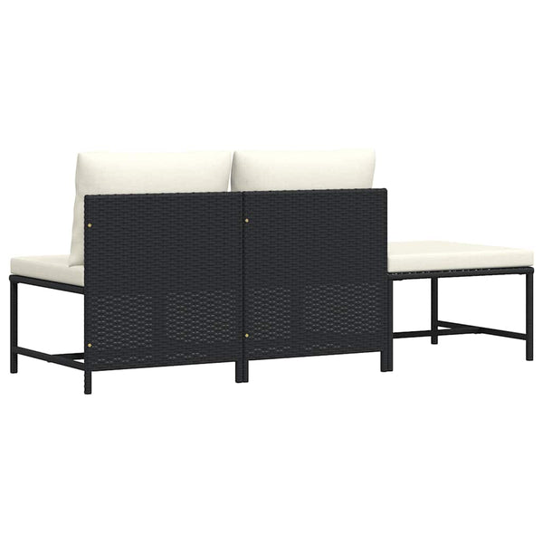Musta puutarhasohvasarja 3-osainen, tyynyillä, polyrottinki
