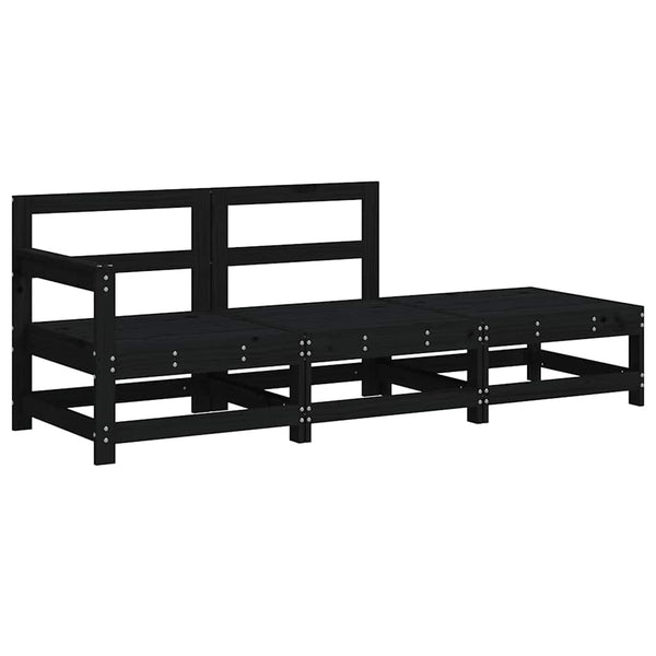 Musta puutarhasohvasarja tyynyillä 3-osainen, puu