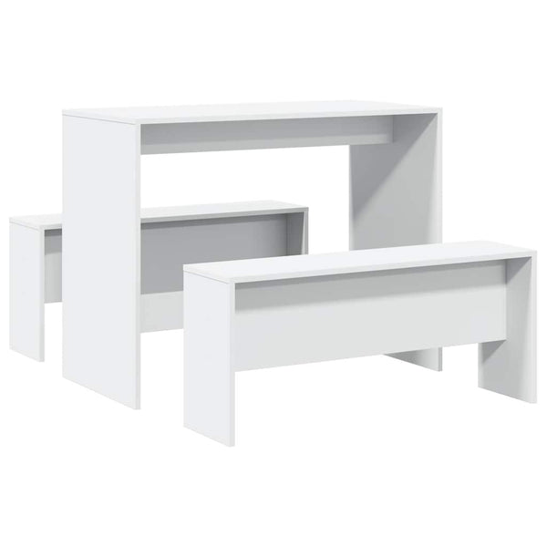 Valkoinen ruokapöytä- ja penkkisarja puinen