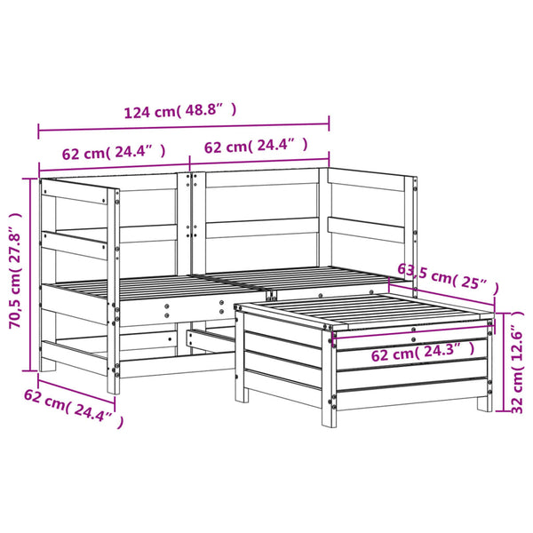 Valkoinen ulkosohvasarja 3-osainen, mänty
