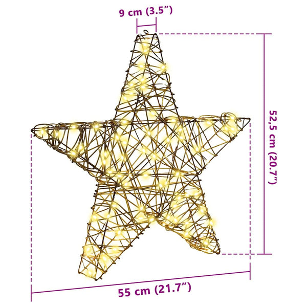 3D Tähti Lämmin valkoinen 55 x 52.5 x 9 cm Rottinki