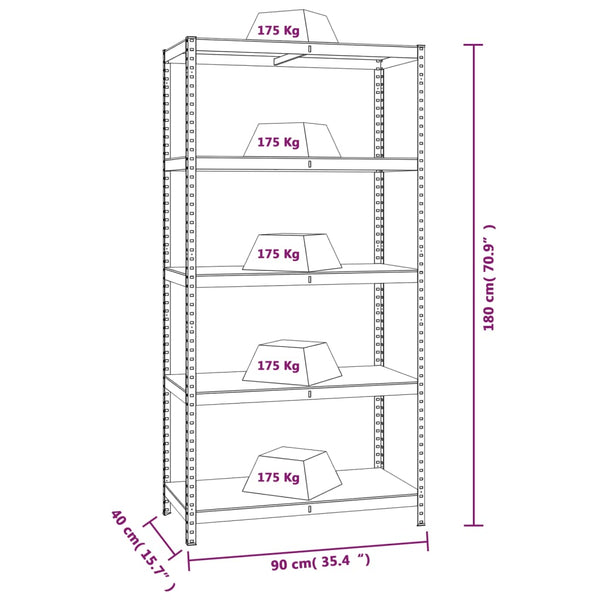 Antrasiitti varastohyllyt 5-tasoiset 2 kpl, teräs puu
