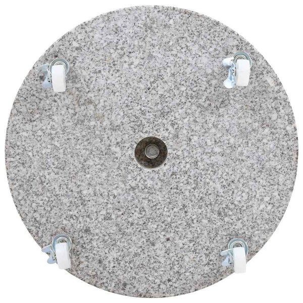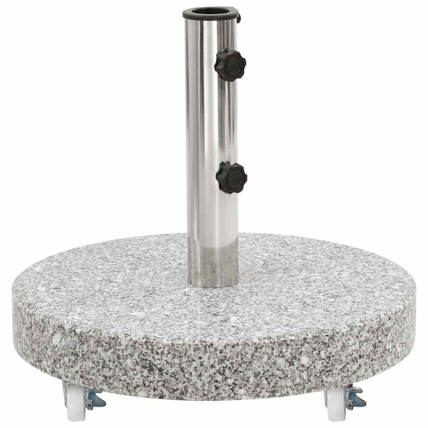 Vahvasta graniitista valmistettu, 30 kg painava aurinkovarjon alusta on erittäin vakaa ja varmistaa, että varjosi pysyy pystyssä tuulisellakin säällä. Aurinkovarjotelineessä on kaksi lukittuvaa pulttia, jotka pitävät varjon paikoillaan. Mukana tulee yksi sovitinosa, jonka ansiosta aurinkovarjotelineeseen voidaan laittaa kaikki varjotangot, joiden halkaisija on 38/48 mm. Lisäksi 4 pyörän avulla aurinkovarjon alustaa voidaan liikuttaa vapaasti.