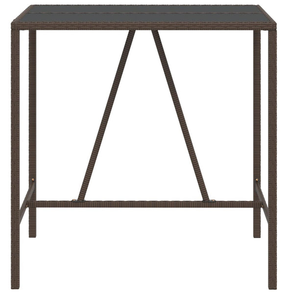 Ruskea baaripöytä 110x70x110cm lasipöytälevyllä polyrottinki