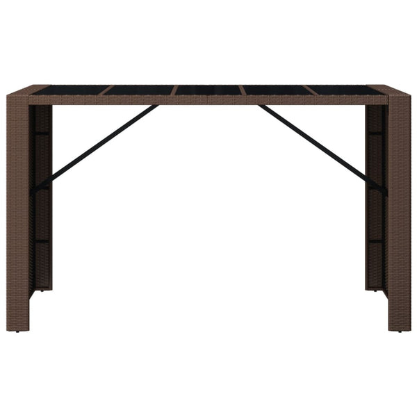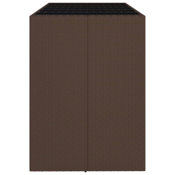 Ruskea baaripöytä 185x80x110cm lasipöytälevyllä polyrottinki