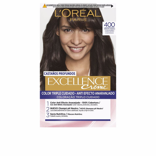 L'Oréal Paris Excellence Brunette Väriaine #400-Tosi Ruskea 192 ml on ammattimainen hiusten värjäysratkaisu, joka tarjoaa syvän, kestävän ruskean sävyn ja samalla hoitaa hiuksia. Sen ainutlaatuinen koostumus sisältää kolmivaikutteisen järjestelmän, joka suojaa, vahvistaa ja ravitsee hiuksia värjäyksen aikana. Täydellinen peittävyys myös harmaille hiuksille.